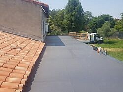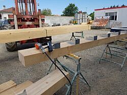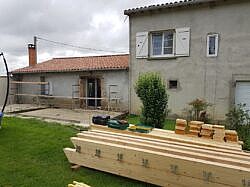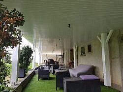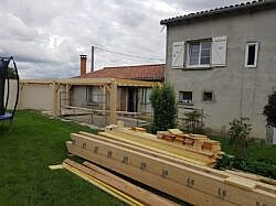 Charpente couverture terrasse 2022 - Couverture / Charpente Travaux réalisés sur ce chantier Création complète de charpente pour une couverture de terrasse avec étanchéité PVC et finition lambris PVC.