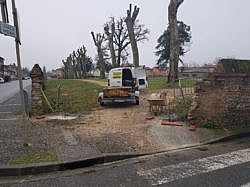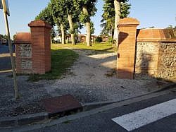 Pilier Saint-Sulpice-sur-Lèze 2021 - Maçonnerie Travaux réalisés sur ce chantier Création de piliers en briques forainesRaccordement de mur en galets